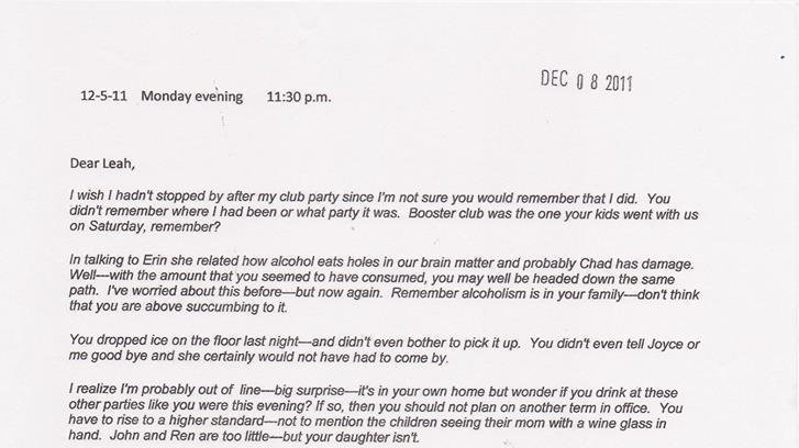Here is a letter allegedly written by PA Leah Askey's mother and received by the Prosecuting Atty's office in Lincoln County. Notice the date stamp on the letter showing when it was opened which is common in legal offices. Also notice that this letter was written 22 days before Betsy's death. Make of it what you will... Booze, Extra marital affairs with Police and Witnesses, financial problems?? Resign Leah Askey You are not fit for office! Two people are dead one person went to jail who did nothing wrong for almost 5 years. Alcoholism - The disease that makes you too selfish to see the havoc you created and the lives you've shattered - - - this letter is very disturbing. Why hasn't the Missouri Bar acted to protect the Public?