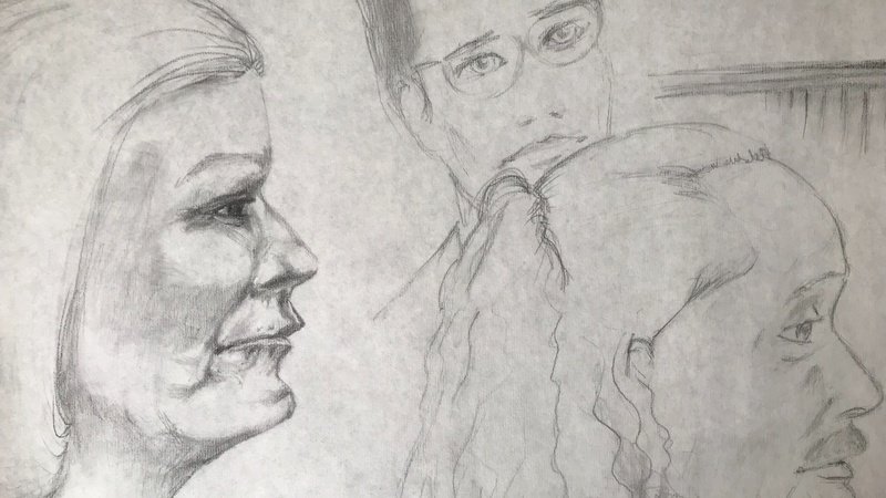 Pictured below Pam Hupp at sentencing with her attorneys Copyrighted sketch by Roman Buddemeyer.