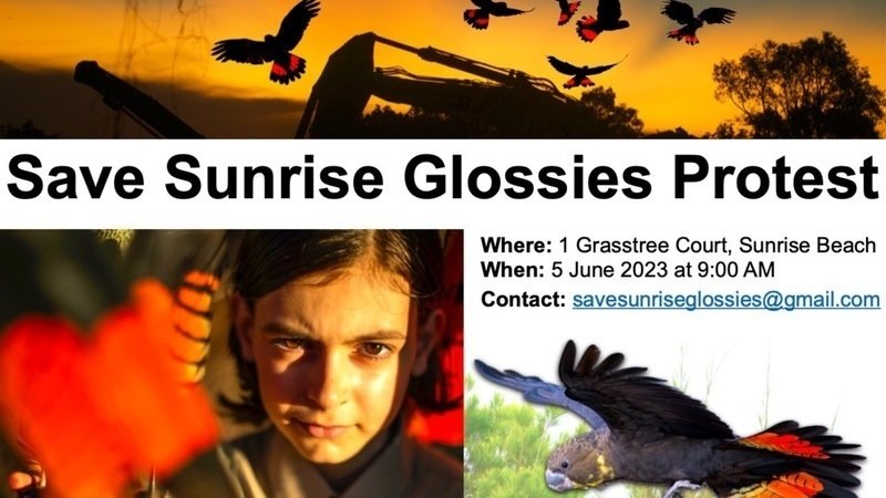 A peaceful protest to Save Sunrise Glossies will be held this Monday 5 June 9am at 1 Grasstree Court, 'World Environment Day'.