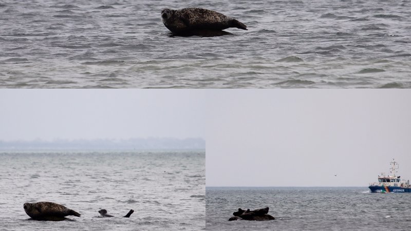die neue Seehund-Kolonie vor Fehmarn scheint sich dort sehr wohl zu fühlen. Die mehr als 10 Tiere richten sich in Ufernähe regelrecht ein. Die Fotos, die Sie sehen, sind heute entstanden.