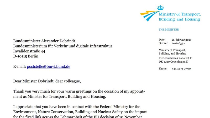 der dänische Verkehrsminister hat dem deutschen Verkehrsminister Alexander Dobrindt jetzt einen Brand- bzw. Beschwerdebrief geschickt ( http://www.ft.dk/samling/20161/almdel/tru/bilag/201/1727308.pdf ). Und das ist ein Affront, ein Unding und eine Frechheit! Denn der dänische Minister versucht, den Behörden in Schleswig-Holstein einen Schwarzen Peter zuzuschieben. Sie würden für Verzögerungen sorgen. Dabei haben seine eigenen Planer allerhand Fehler und Mängel verursacht, die zu einem großen Aufwand in Deutschland geführt haben. Übrigens bezahlt vom deutschen Steuerzahler. Und wir sagen erst recht: Dieser riskante, gigantische Tunnel darf nie gebaut werden!