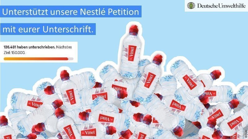 Liebe Unterstützer*innen! Wir brauchen eure Hilfe. Diesen Freitag übergeben die Deutsche Umwelthilfe und ich die Stimmen aus der Nestlé Petition. Aktuell haben 136.471 Unterstützer die Petition unterzeichnet. Bitte helft uns noch mehr Druck auf den Nestlé Konzern auszuüben und setzt damit ein Zeichen gegen diese exzessive und ressourcenvergeudende Wegwerfkultur. Hier könnt Ihr die Petition unterschreiben.