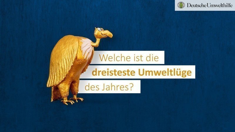 Liebe Unterstützer:innen! Habt ihr euch auch schon mal so richtig über das Greenwashing und die Umweltlügen mancher Unternehmen geärgert? Auch in diesem Jahr rufen wir euch dazu auf, mit uns die dreisteste Umweltlüge 2022 zu finden. Ihr könnt ab sofort euren Kandidaten nominieren. Wer verdient den Schmähpreis Goldener Geier für die dreisteste Umweltlüge in diesem Jahr? Teilt es uns jetzt mit!
