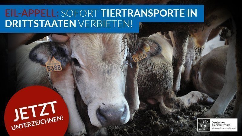 Letzte Woche haben wir euch aufgefordert, unseren Eil-Appell gegen Tiertransporte außerhalb der EU zu unterzeichnen, und 18.000 Menschen haben schon mitgemacht. Das ist großartig! Um bei der Politik etwas zu bewirken, ist es wichtig, dass noch mehr Menschen unterschreiben. Bitte teile den Link mit all deinen Freunden: https://www.tierschutzbuero.de/eil-appell-gegen-tiertransporte/
