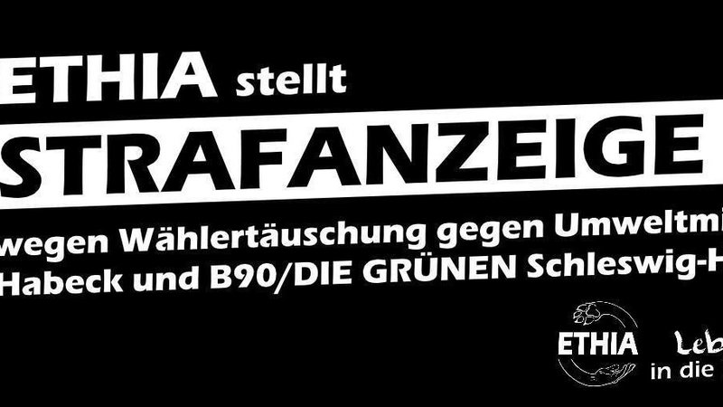 nach §108a StGB und tierschutzwidrigen Handelns gegen den verantwortlichen Spitzenkandidaten Umweltminister Dr. Robert Habeck, sowie Monika Heinold und die Vorsitzenden Ruth Kastner und Arfst Wagner in Verantwortung des BÜNDNIS90/Die GRÜNEN in Schleswig-Holstein