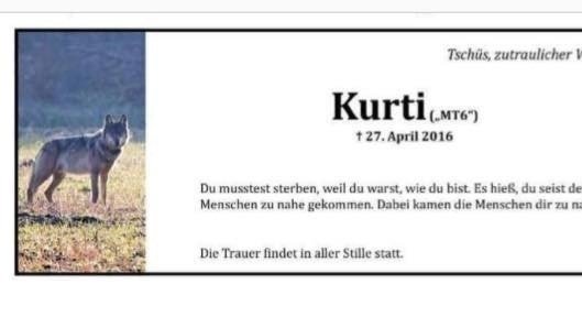 Petition updateUntersuchungsausschuss zur Tötung des Wolfes "Kurti" gefordert!R.I.P. Kurti - Aufruf zur Demoteilnahme vor dem Bundestag am 5. Mai
