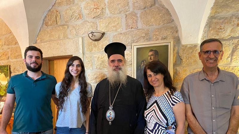 Archbishop Theodosius (Atallah) Hanna of the Greek Orthodox Patriarchate, an outspoken critic of the Occupation and for Palestinian rights, also made a pastoral visit. See the photo of him with Layan, her brother and parents.