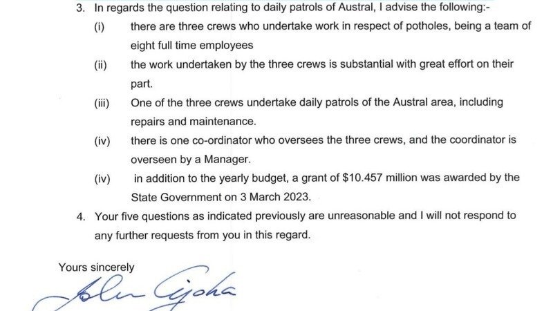 Since the previous update regarding the Austral Road Patrol Promises I have had a exchange of Correspondence with the Liverpool Council CEO who still refuses to answer the 5 questions that I asked regarding the promise of Daily Patrols in December 2022.