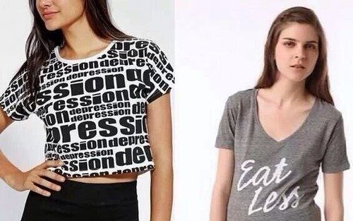 “As for the shirt on the right: It is simply appalling to find this hanging on the racks in stores all over the country. This promotes eating disordered behavior and unhealthy body image. Even the way it is advertised is promoting unhealthy standards of beauty. It suggests if you “eat less” you will be beautiful. This needs to stop. Struggling with an eating disorder myself, I find this incredibly triggering and it makes me mad. Why would someone ever promote this lifestyle. It is a living hell, yet the media tends to glorify the perks of restricting your food intake to younger and younger girls. And people wonder why eating disorders are on the rise. There is enough pressure as it is in a society which emphasises the need to be skinny. Beauty doesn’t have a weight limit. It’s time to stop pushing the boundaries just to make a profit, this disease is fatal and it needs to be taken seriously.