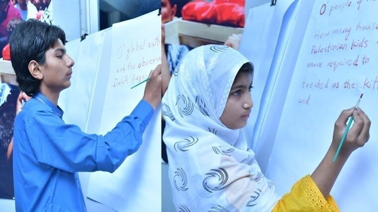 The original video of the two small children who wrote the historic resolution in their own blood, titled "Stop Infanticide in Gaza -- Resolution WritteninBlood", has been aired now. The video candidly marks the United Nations Exhibit titled: "Gaza, Palestine---A Crisis of Humanity, A Cry for Justice".
