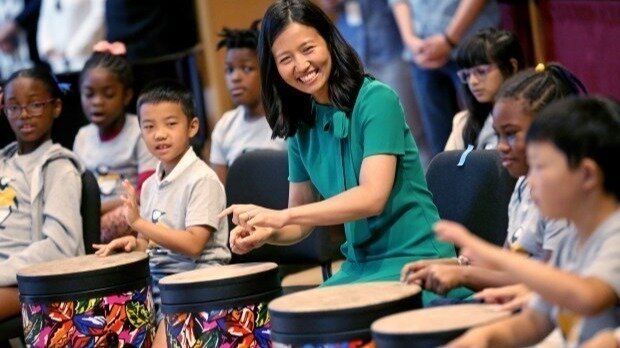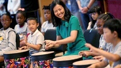 Gallery: Mayor Wu plays drums with children at New England Conservatory – Boston Herald