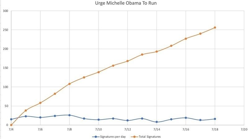 16 new signatures, and on pace for ~771 signatures by the end of Aug 18th. Hoping we can show Michelle Obama the strong support she has from us.