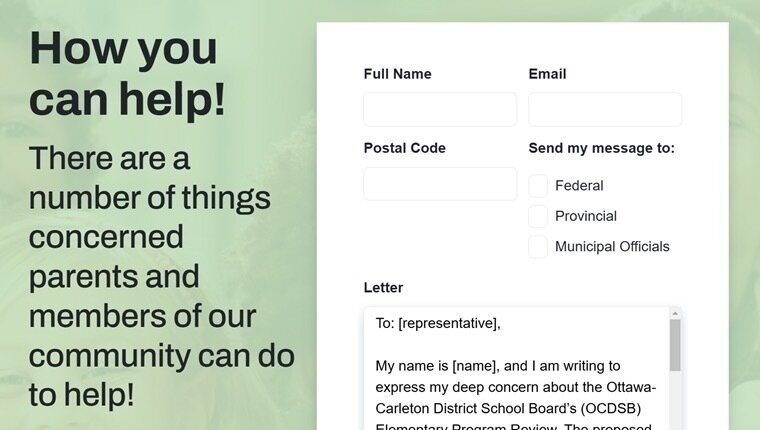 - Email decision-makers through the Concerned Parents of Ottawa site, which includes a function to easily send your message to trustees and relevant officials at the federal, provincial and municipal levels