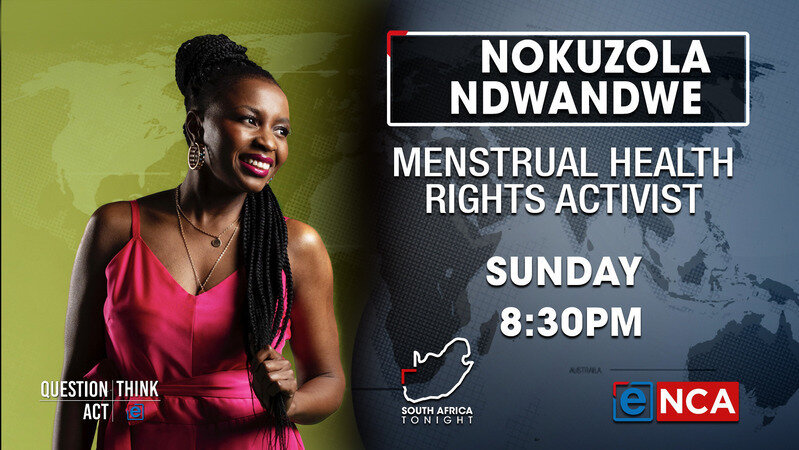 [Media alert ] Catch Award-winning Menstrual Health Rights Activist, Global Gender Equality Champion and Founder of #TeamFreeSanitaryPads, Nokuzola Ndwandwe on ENCA @eNCA