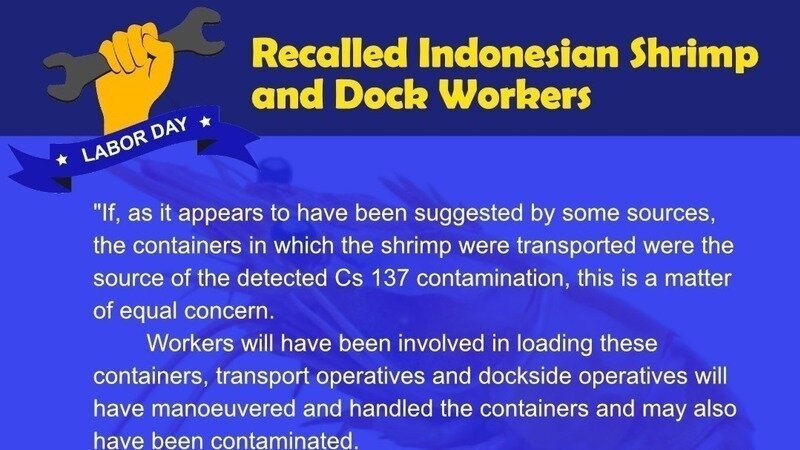Given the very low reported levels of Cs 137 in Indonesian marine environments, there is a strong possibility that the food fed to the shrimps is the source of elevated Caesium 137 in the batches of shrimps detained at US ports and possibly sold on the USA open market. Workers will have been involved in loading these containers, transport operatives and dockside operatives will have manoeuvered and handled the containers and may also have been contaminated.