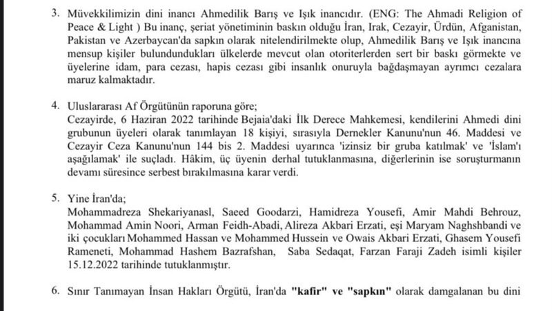 [EDIRNE, TURKEY, June 2nd] 104 members of the Ahmadi Religion of Peace and Light, and two UK journalists, remain detained in the Edirne deportation center, with one day left to file an appeal against the deportation orders. A legal team representing the 104 members who were peacefully seeking to claim asylum has been assigned to put in an appeal, stating that it is illegal to deport the group based on humanitarian grounds. It urges the Turkish authorities to stop the deportation of the families as it violates the core principle of non-refoulement under international human rights law. Deporting the families would expose them to imprisonment or execution in their countries of origin. The appeal will be reviewed by the court, it is unknown when the court will issue its final judgment.