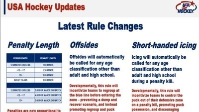 USA Hockey added a rule change that includes the ban of delayed offsides and icing on penalty kills. These rules are meant for pewees and younger and should not be enforced for bantams and older.