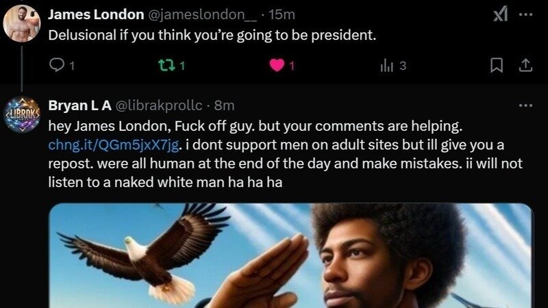 i dont support men on adult sites but ill give you a repost. were all human at the end of the day and make mistakes. i will not listen to a naked white man ha ha ha