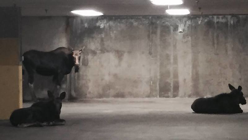 There is a momma moose and her two calves that have made Vail Village their home. They have not hurt anyone and keep to themselves mostly. They like to bed down in the parking structures and eat leaves off of trees.