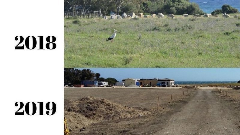 Then and now in Casa de Porros, Valdevaqueros: look at the destruction of a small habitat within the Natura 2000 Network. The proliferation of such construction projects in Tarifa, carried out by the greed of a few, is systematically destroying our lands, our landscapes, our culture. How can we defend our environment, our health, with these types of unlawful acts? There is no Planet B and we are not going to throw in the towel. The next generations are watching our current actions. Complaints have been submitted to the European Commission and the Public Prosecution Service.