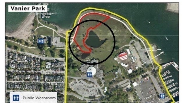 In the featured photo on this update, the proposed "new" Vanier pond boundaries are in RED. I've added a more appropriate perimeter around the ponds with a BLACK circle to indicate where the wildlife at the pond habitually like to roam, "trim" the grass and deposit their droppings (LOL). It's actually most of Vanier, which everyone knows who enjoys visiting the ponds. The northwest tip of Vanier, outside of my black circle, is the kite flying area. Being quite windy it's not an ideal spot for hanging out and picnicking. Naturally, drinkers will gravitate to the ponds instead, and likely some of the more inebriated will use them as a pissoir, as they do at the Jericho ponds.