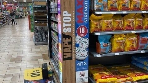 Some supermarkets are normalising vapes as if they did not even containing the powerful drug nicotine, by re-sited all vaping products at the end of isles, and close to the tills. The photo above highlights in large print the highest strength of nicotine vapes available . This can only encourage Vaper’s to become even more addicted to nicotine of the highest strengths available.