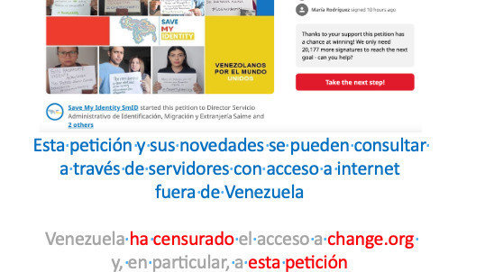 Petition updateVenezolanos exigen celeridad, seguridad y transparencia en la entrega de sus pasaportesPetición censurada en #Venezuela