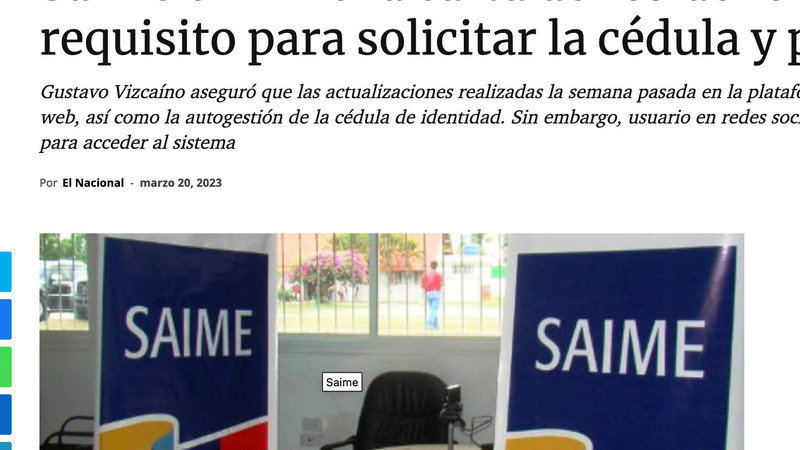 Atualização do abaixo-assinadoVenezolanos exigen celeridad, seguridad y transparencia en la entrega de sus pasaportesEl SAIME ya no exigirá constancia de residencia para solicitud de renovación CI y pasaporte