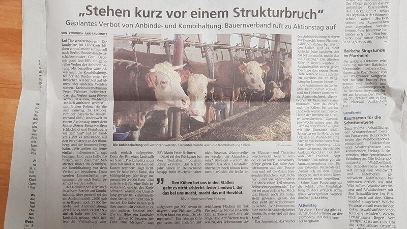 Mir ist es jedoch wichtig vorauszuschicken, daß ich großen Wert darauf lege, zwischen den Tierhaltern, die ihren Tieren Weidehaltung ermöglichen, selbst wenn dies zusätzlichen Aufwand erfordert, oder die ihre Ställe umbauen, und jenen Tierhaltern zu differenzieren, die ihre Tiere weiterhin in qualvollen Haltungsformen, wie der ganzjährigen Anbindehaltung leiden lassen!!!