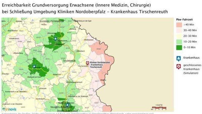 Trotzdem ist ein Ausbau des Klinikums Weiden nicht geeignet, den Ausfall des Krankenhauses Tirschenreuth zu kompensieren, weil die zu langen Anfahrtszeiten bestehen bleiben. Deshalb war das KH Tirschenreuth bei Gründung der KNO AG als zweite Schwerpunktklinik neben Weiden geplant.