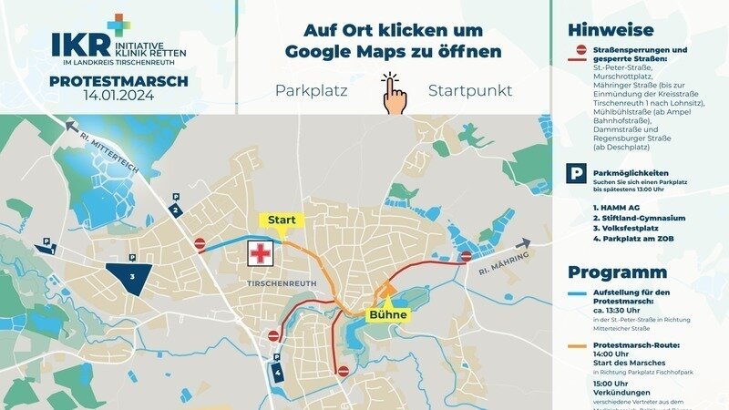 Auf der Website findet Ihr Infos zu Straßensperren, ausgewiesenen Parkflächen und den Zeitplan für die Demonstration.
