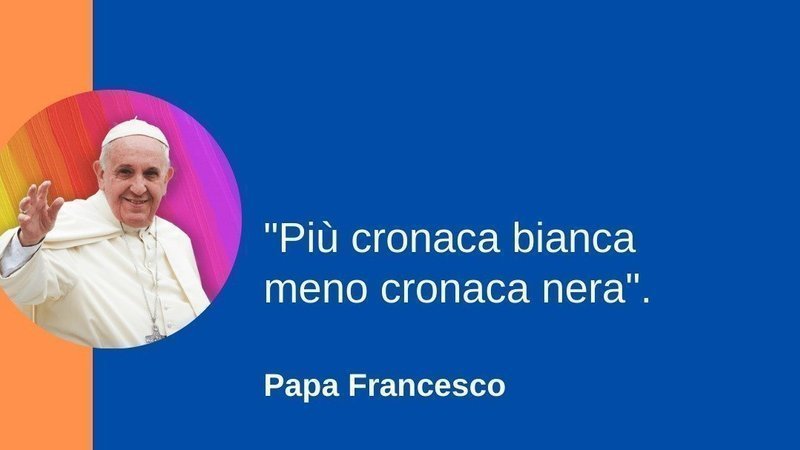 Care amiche e cari amici che avete già firmato la nostra petizione e che la firmerete, l'invito che vi rinnoviamo e a fare tanto passaparola tra i vostri amici e contatti per far conoscere ed apprezzare la nostra petizione e provocazione civile che chiede a chi ha la responsabilità dell'informazione di smetterla di raccontarci e martellarci ogni giorno solo notizie negative e depressive. Più persone firmeranno la petizione più essa avrà valore ben sapendo però che sarà decisivo avere dalla nostra parte quelli che sono i cosiddetti opinion leader ossia quelle persone che hanno un peso specifico tale da poter provare davvero a cambiare il modo attuale di fare informazione. E a loro che dobbiamo arrivare ad iniziare da Papa Francesco a cui a breve recapiteremo il testo della petizione sperando che voglia poi firmarla e sostenerla.