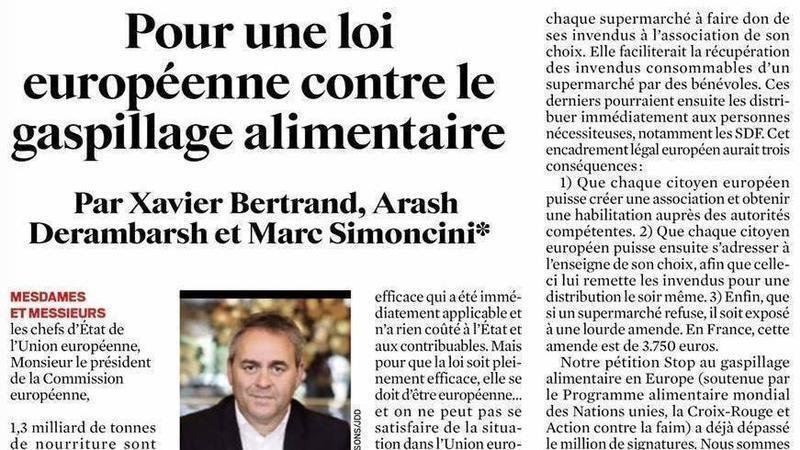 Avec Xavier Bertrand et Marc Simonicini, nous publions une tribune dans le JDD pour demander au Président Emmanuel Macron et aux chefs d'Etat de l'UE de faire voter une loi européenne contre le gaspillage alimentaire : https://www.lejdd.fr/Politique/xavier-bertrand-veut-une-loi-europeenne-contre-le-gaspillage-alimentaire-3772679