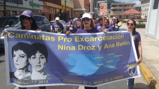 La Comisión de la Mujer de la Federación de Maestros de Puerto Rico (FMPR) marchó hoy en el pueblo de Naranjito reclamando la libertad de las prisioneras puertorriqueñas Ana Belén Montes y Nina Droz. También se distribuyó información contra la privatización de las escuelas y la imposición del modelo chárter.