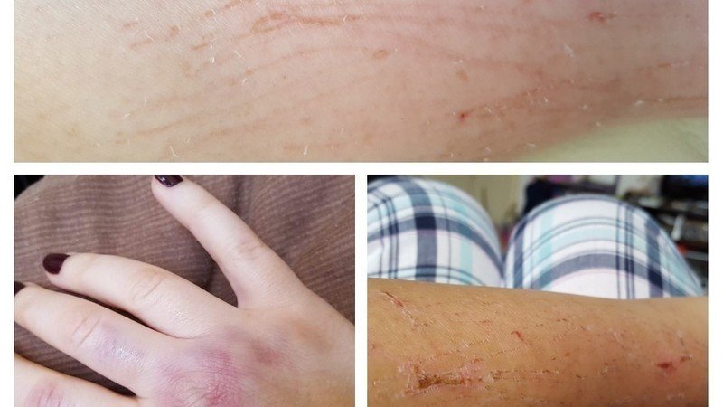 Il y a quelques semaines je me suis mutilée le bras sans même m'en rendre compte. En pleine nuit mon mari m'a retrouvée en position foetale dans la salle de bain. A priori j'ai utilisé le premier objet qui m'est passé sous la main : une pince à épiler.