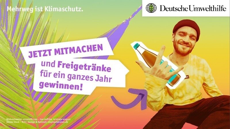 Liebe Unterstützer*innen, nur noch bis 31. August läuft unser „Mehrweg ist Klimaschutz“-Gewinnspiel. Damit wollen wir es euch so einfach wie möglich machen, im Alltag einen positiven Beitrag für den Umweltschutz zu leisten: Mit etwas Glück könnt ihr hier eine Jahresration Getränke im Wert von 800 Euro gewinnen – und zwar in umweltfreundlichen Mehrwegflaschen!