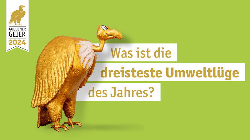 Wie jedes Jahr verleihen wir daher den Goldenen Geier für die dreisteste Umweltlüge des Jahres. Wir nehmen eure Nominierungen entgegen – teilt uns mit, wo ihr Greenwashing vermutet!