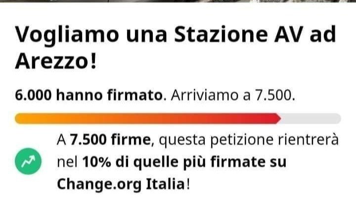 Neuigkeit zur PetitionVogliamo una Stazione AV ad Arezzo!Superate le 6000 firme! Arriviamo a 10000 per avere ancora più peso!