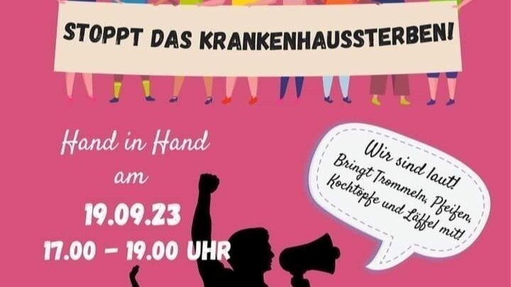 Bringt alles mit was LAUT ist. Wir gehen Hand in Hand und Schritt für Schritt gemeinsam zum Krankenhaus Grimma.