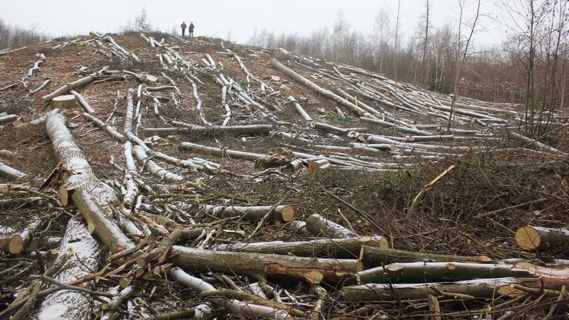 La photo ci-dessus prise ce 25 janvier parle d’elle-même. Sur cette parcelle toutes les générations d’arbres ont été prélevées, principalement du chêne et du châtaignier, laissant un terrain à forte déclivité exposé aux intempéries. La faune est perturbée, perdant repère et abri. Tout l’écosystème forestier s’en trouve profondément perturbé.
