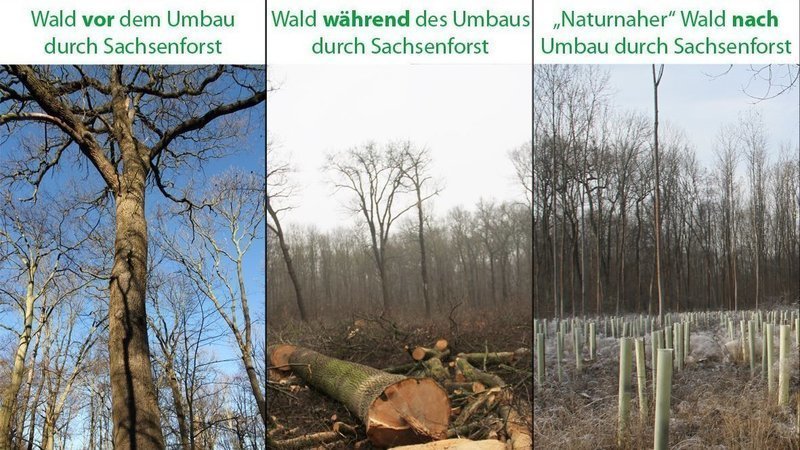 Eine Bedrohung, die für die meisten der als FFH-Schutzgebiete ausgewiesenen Biotope in Deutschland gilt, da die deutschen Umweltminister hier keine Regelwerke für einen echten Schutz etabliert haben. Der angebliche Schutzstatus ist ein zahnloser Papiertiger, der nach Belieben für Geldinteressen ausgehebelt werden kann. Stattdessen bestimmen unkontrollierte forstwirtschaftliche Betriebspläne, was in einem geschützten Natura-2000-Biotop passieren darf. Und so werden von Sachsenforst hier munter ohne Genehmigung die für den geschützten Auwald so wertvollen 300-jährige Eichen eingeschlagen – was für ein Trauerspiel, dass ausgerechnet Bürger gegen diese rücksichtslose Schädigung des Biotops vorgehen müssen! Wen wundert es, dass das Vertrauen in Politik, Gesetze und Amtsträger immer weiter schwindet? Vorbei die Zeiten, in denen die Staatsforsten das Monopol der Pflege und Erhaltung des deutschen Waldes innehatten. Das Gegenteil ist offensichtlich vielerorts der Fall.