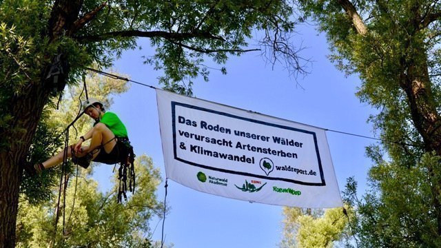 Als Ort für die öffentliche Präsentation der neuen Website wählten die Initiatoren heute einen gefährdeten Wald: In Hamburg-Altenwerder ist geplant, 45 Hektar eines seltenen Auen- und Feuchtwaldes in den Vollhöfener Weiden für die Hafenerweiterung zu roden. Dadurch sind 23.000 Bäume und sechs geschützte Fledermausarten, wie die Rauhaut- und Wasserfledermaus gefährdet. Hinzu kommen mehrere „Rote-Liste-Vogelarten“ wie Gelbspötter, Kleinspecht und Trauerschnäpper. Die Fläche verbindet verschiedene Biotope und Naturschutzgebiete im Raum der Süderelbe und hat dadurch eine wichtige Funktion für den Erhalt der genetischen Vielfalt. Aus Protest gegen die drohende Waldzerstörung spannten KletterInnen von ROBIN WOOD heute zwischen Bäumen ein Banner mit der Aufschrift: „Das Roden unserer Wälder verursacht Artensterben & Klimawandel".