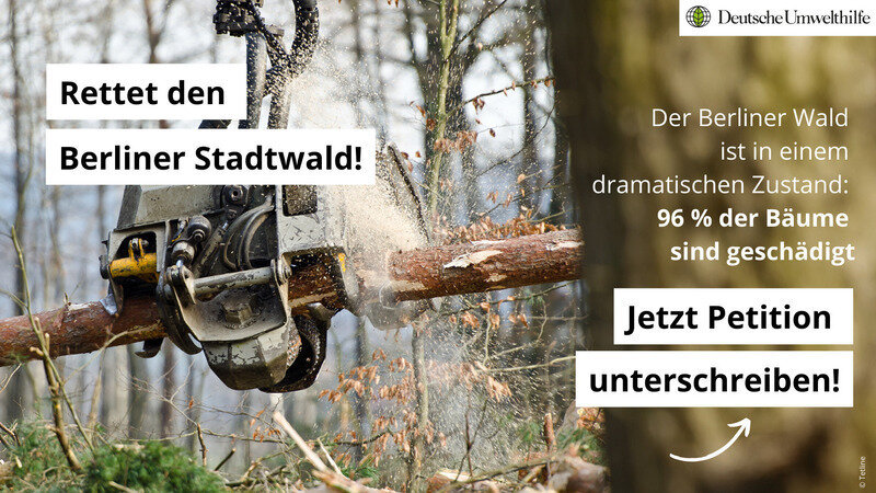 "Unser Berliner Wald ist in einem dramatischen Zustand: 96 % der Bäume sind geschädigt. Die intensive Forstwirtschaft, Hitze, Dürre und der Klimawandel setzen ihm enorm zu – doch statt ihn konsequent zu schützen, wird er weiter ausgebeutet. Jedes Jahr werden zehntausende Bäume gefällt, tonnenschwere Maschinen zerstören den Waldboden und hinterlassen einen immer anfälligeren Wald.