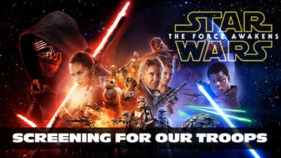 It’s a shame that those fighting for our freedoms won't be able to see this film until either they return home or it is released on blue ray and DVD. Having the chance to screen the movie, even after the theatrical release would be a huge moral booster especially during this holiday season; where many troops will not be with their own families. We are petitioning to Disney for the chance for thousands of deployed American soldiers to watch this film and let them escape the world they are in currently and put a smile on everyone's face, even just for a couple hours. That is the whole point of a movie, and especially Star Wars. So Disney please support your troops with this one special gift and boost the moral this holiday season overseas! Thank you everyone who signs this petition and may the force be with you!