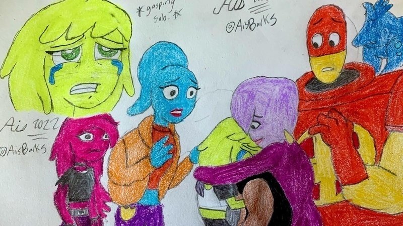 Riley enters the Jones And Drix Detective Agency, and a surprising sight meets her eyes; Drix was covered in party decorations that seemed to have spilled from the closet, including a banner that read ‘Happy Birthday Riley!’. The cold pill sheepishly smiles at her. Guess the surprise was ruined! Maria facepalms and shakes her head at her nerdy boyfriend, as Dander barks happily and bounds over to lick his master. Angie looks up, relieved she was saved from Mitosis, but now looks at her in worry. Her best friend’s face looked grave, and her eyes widen a bit as she sees she cradled Ozzy’s jacket in her arms.