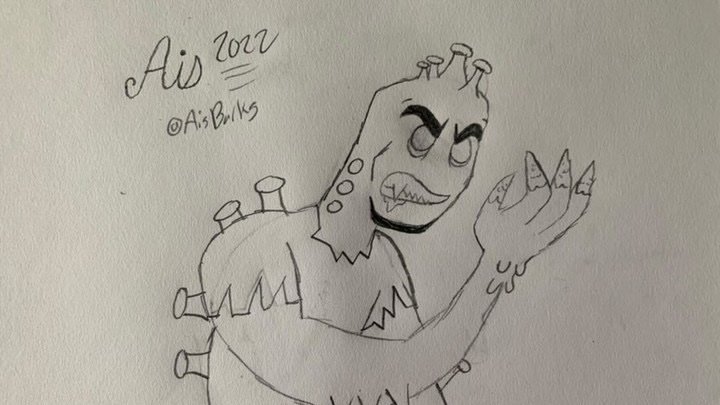 Went with a spore-like, zombified/trance appearance for it. When in combat, he’s in a feral, monstrous state of mind. And his claws were inspired by the rash/skin peeling that usually comes when one contracts the HIV virus. Bet his skin becomes a much paler shade of blue, while the fronds turn grayish navy blue, like the pictures you see of the HIV strain online. One lethal touch, and, if you’re a white blood cell, you’re infected and suffer the same fate, and your only instinct is to create more and attack the body. He gets infected by a substance that is non anthropomorphic, like pollen pods are.
