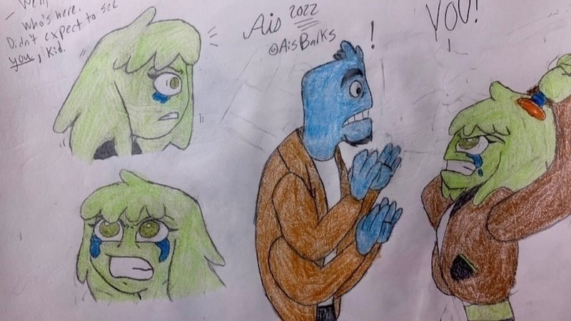 Channeled my own anger from the past and recently into her expressions and actions here. She freezes upon hearing Mitosis discover her despair, tears in the corners of her eyes. Her tiny body trembles violently.