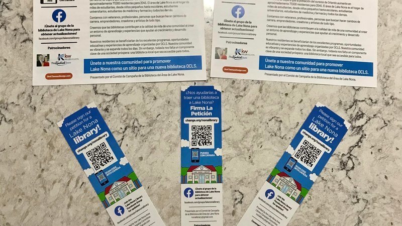 Thanks to the generosity of our neighbors, we now have beautiful new bookmarks and flyers to spread the word about our efforts to get a library!