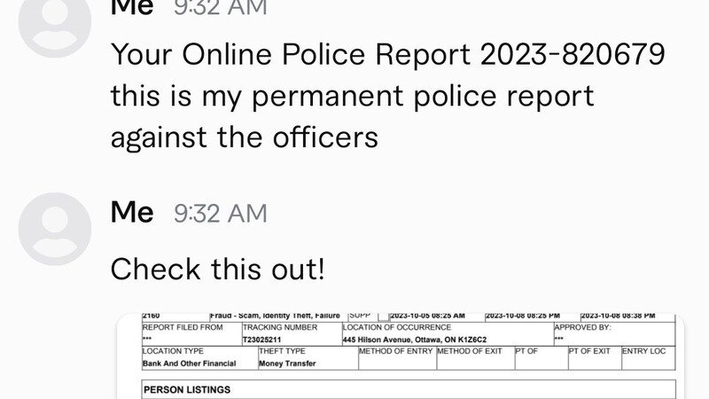 When I reported They murdered my mother and these officers need to be shot down, these officers Sent their friends in teams of 40 to have me arrested. The police service said they would get them to back off, when they swarmed my brother instead of me, and I called the 6132361222 number and told them what was happening.
