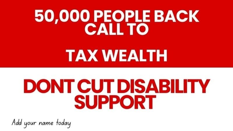 Over 50,000 people have now backed the call to tax wealth, not cut disability support!